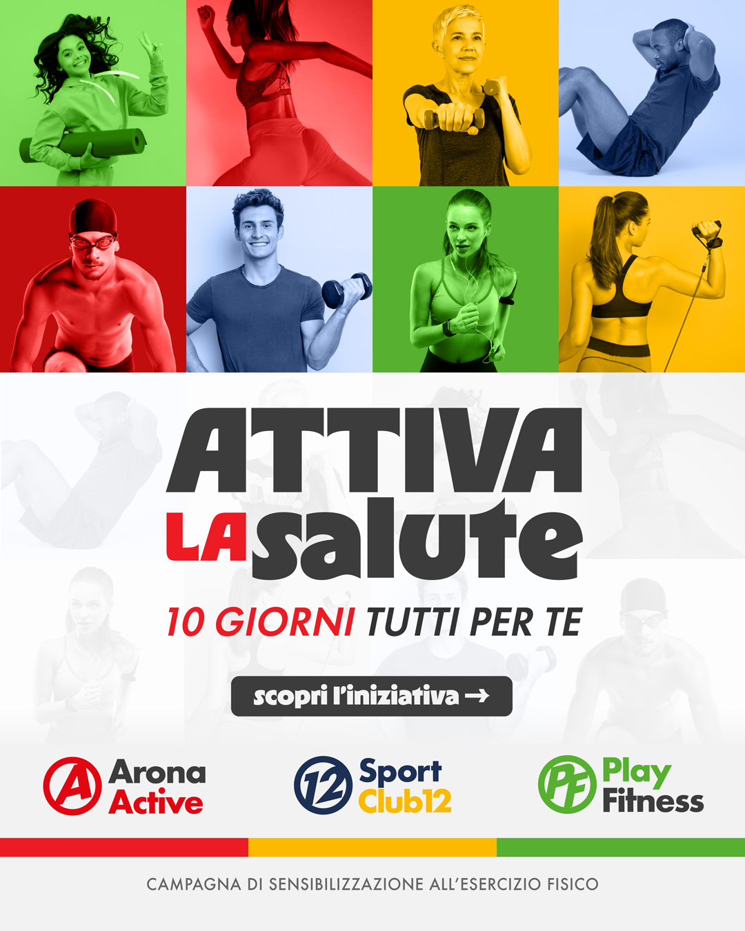 Con la nuova campagna di sensibilizzazione all'esercizio fisico “Attiva la Salute”, per dieci giorni, potrai vivere un’esperienza completa di fitness e benessere, provando tutti i servizi che Sport Club 12 mette a disposizione